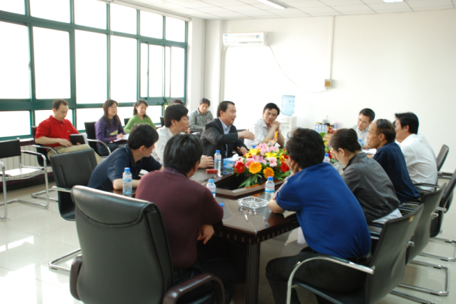 5月8日下午,中國中材集團公司劉志江副總經(jīng)理、工程部劉建民部長等一行來天津市北辰科技園考察投資環(huán)境時,到中材節(jié)能發(fā)展有限公司檢查指導(dǎo)工作,與中材節(jié)能部分管理層成員以及部分中層人員進行了座談。中材節(jié)能發(fā)展有限公司董事長張奇、總經(jīng)理何新平分別作了工作匯報。隨同劉總考察的還有中材集團天津礦山公司段志春總經(jīng)理、南京礦山公司劉峰山總經(jīng)理、兗州礦山公司孔繁運總經(jīng)理、西安工程公司朱發(fā)良總經(jīng)理等兄弟單位領(lǐng)導(dǎo)。