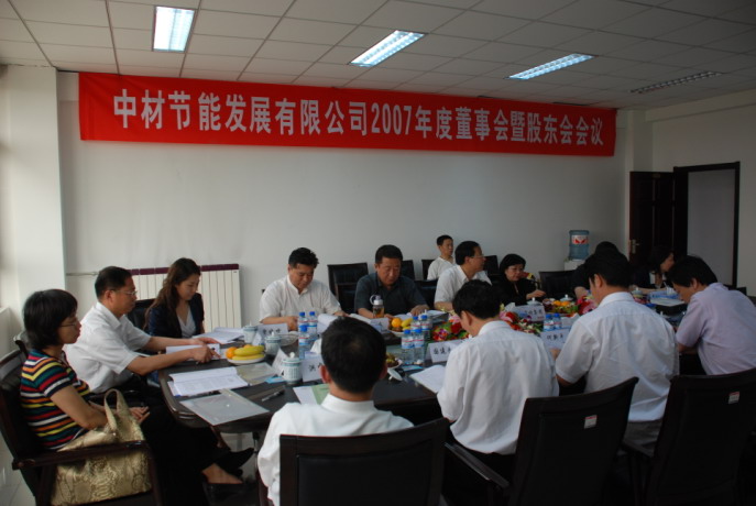 6月12日,中材節(jié)能發(fā)展有限公司召開(kāi)年2007度董事會(huì)暨股東會(huì)會(huì)議,會(huì)議由董事長(zhǎng)張奇主持,公司全體董事、股東及部分高管人員出席會(huì)議。經(jīng)過(guò)全體股東、董事的認(rèn)真審議,董事會(huì)審議并通過(guò)了全部14項(xiàng)議案,股東會(huì)審議通過(guò)了全部12項(xiàng)議案,會(huì)議取得了圓滿成功。
