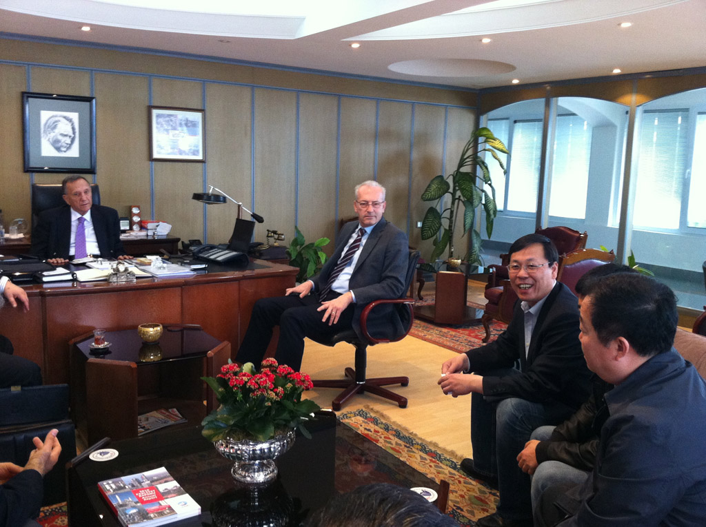 在視察過程中,胡也明總裁與NUH Cimento Sanayi A.S. 水泥公司主席Atalay ?AH?NO?LU先生、總經(jīng)理Hayrettin ?ENER先生進行了親切會談,向他們介紹了中國改革開放以來水泥行業(yè)取得的驕人成績以及中材節(jié)能股份有限公司在余熱發(fā)電行業(yè)獲得的各項成果,感謝NUH Cimento Sanayi A.S. 水泥公司對項目實施給予的大力支持與合作,并真誠邀請Atalay ?AH?NO?LU先生和Hayrettin ?ENER先生在合適的時候?qū)χ胁墓?jié)能股份有限公司進行訪問。