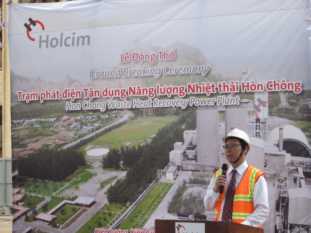 2011年5月26日,由中材節能股份有限公司總承包的越南HOLCIM余熱發電項目在越南Kien Giang省的Hon Chong縣舉行了開工典禮。越南Kien Giang省省長Mr. Nguy?n Tr?n Nam、越南HOLCIM技術總監Mr.Francois Goulut、Hon Chong水泥廠廠長Mr. Aridavid Lozano與中材節能股份有限公司總裁胡也明一同啟動開工按鈕,這是中材節能繼泰國京都萬噸水泥生產線余熱發電項目之后與HOLCIM集團的再次合作。