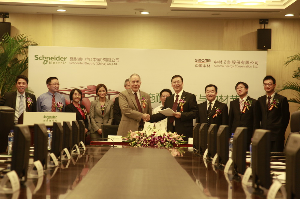 2011年9月21日,中材節能股份有限公司與施耐德電氣集團公司在北京簽署了全球戰略合作協議。中材節能公司總裁胡也明、施耐德電氣集團中國區副總裁葉良俠分別代表雙方在協議上簽字。中材節能副總裁葛立武、市場部部長王毅、市場經理劉強及趙文彬等與施耐德全球MMM解決方案副總裁Diego Areces先生、施耐德國際業務發展總監Glosa小姐、施耐德全球水泥解決方案總監王志榮女士、施耐德碳排放業務總監Jean Pasternak先生等共同見證了此次戰略合作伙伴協議的簽署。