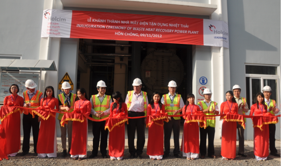 2012年11月9日,由中材節(jié)能承建的HOLCIM水泥集團越南HON CHONG水泥公司余熱發(fā)電項目通過性能考核,舉行了竣工典禮。中國駐越南胡志明市總領(lǐng)事翟雷鳴先生, 瑞士駐越南大使館經(jīng)濟貿(mào)易負責人Mrs. Christine Busser女士分別代表兩國政府出席了竣工慶典,越南堅江省委書記Mr. Nguyen Thanh Son先生,堅江省人大委員會主席Mr. Le Van Thi先生, HOLCIM集團亞洲區(qū)總裁Mr. Paul先生,中材節(jié)能股份有限公司總裁胡也明先生等出席了慶典儀式。