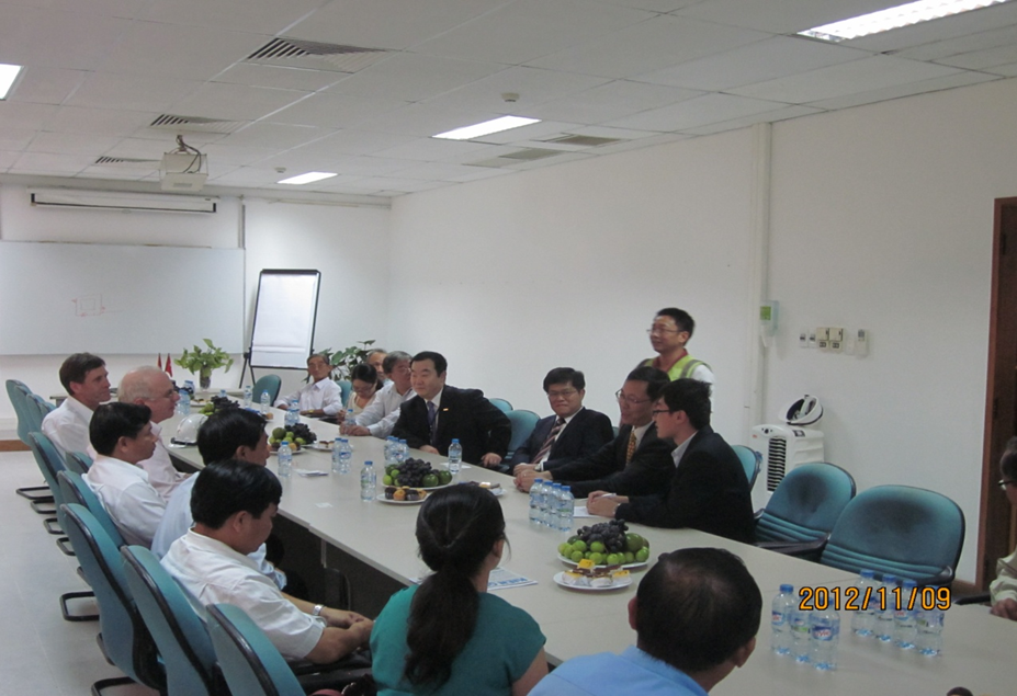 中國駐越南胡志明市總領(lǐng)事翟雷鳴先生在參加慶典期間,還特地到項目部駐地慰問了余熱發(fā)電項目部工作人員,并一起參觀了項目現(xiàn)場,聽取了項目進展情況匯報。翟雷鳴總領(lǐng)事介紹了中越兩國友好關(guān)系以及越南經(jīng)濟發(fā)展的總體情況,他說,越南國內(nèi)市場潛力很大,尤其在節(jié)能減排方面,希望中材集團及所屬企業(yè)加大在越南的發(fā)展力度,與越南的實力企業(yè)保持長期合作,在越南能源等多個領(lǐng)域占有一席之地,為中國企業(yè)樹立一個合作樣板。