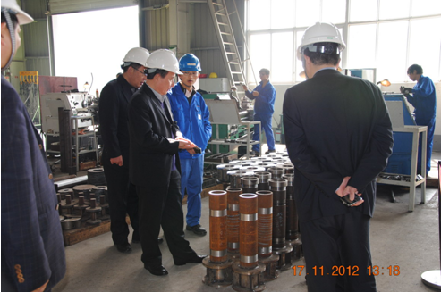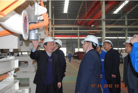 劉志江首先考察了武漢院裝備制造基地——中材節能(武漢)有限公司。在生產車間,劉志江詳細了解了機加工設備的配備以及外購件、外購設備的選用情況。在新落成的基地綜合樓,劉志江對員工辦公、生活條件的改善表示滿意。