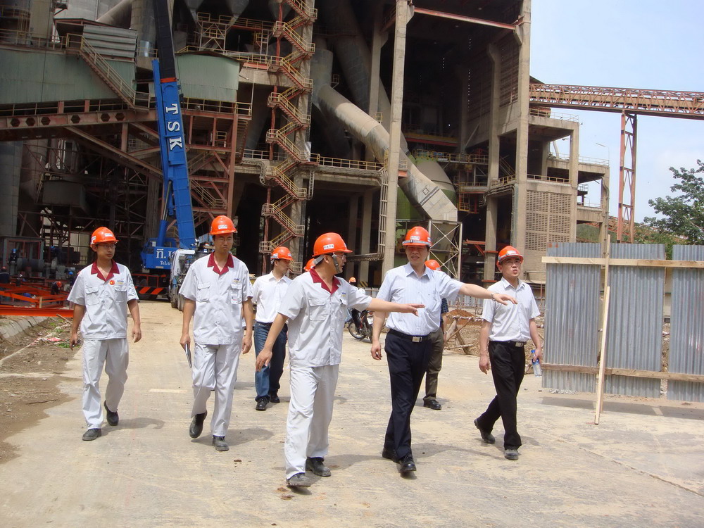 6月,何新平總經(jīng)理、魏文華副總經(jīng)理、董蘭起副總工程師等一行七人,也趕到京都項目現(xiàn)場檢查、指導(dǎo)工作。到現(xiàn)場后顧不上休息,換上安全鞋,戴上安全帽,風塵仆仆視察了循環(huán)水冷卻塔、化學水處理室、汽輪發(fā)電機廠房、SP5鍋爐、AQC5鍋爐、AQC6鍋爐、SP6鍋爐等施工工地。何總對每個項目都仔細觀察,了解各個環(huán)節(jié)的關(guān)鍵點及存在問題,在SP5鍋爐看到所在位置錯綜復(fù)雜,水泥線的輸送從框架中間穿過,并且被水泥線的窯尾、生料磨房、生料輸送三面包圍,又由于和汽輪發(fā)電機廠房相距較近,根本沒有鍋爐鋼架制作場地。就明確指出SP5是京都項目工程中的關(guān)鍵點,加快土建施工速度是首要問題,決不能因為土建而貽誤工期。何總在現(xiàn)場與魏總、董總、王品副部長及京都項目吳蘇軍經(jīng)理商量后,當場拍板:為了加快施工進度,將鋼筋混凝土框架改為鋼筋混凝土框架柱,平臺改為鋼結(jié)構(gòu)形式。對其它各點也進行了精辟地一一闡述……