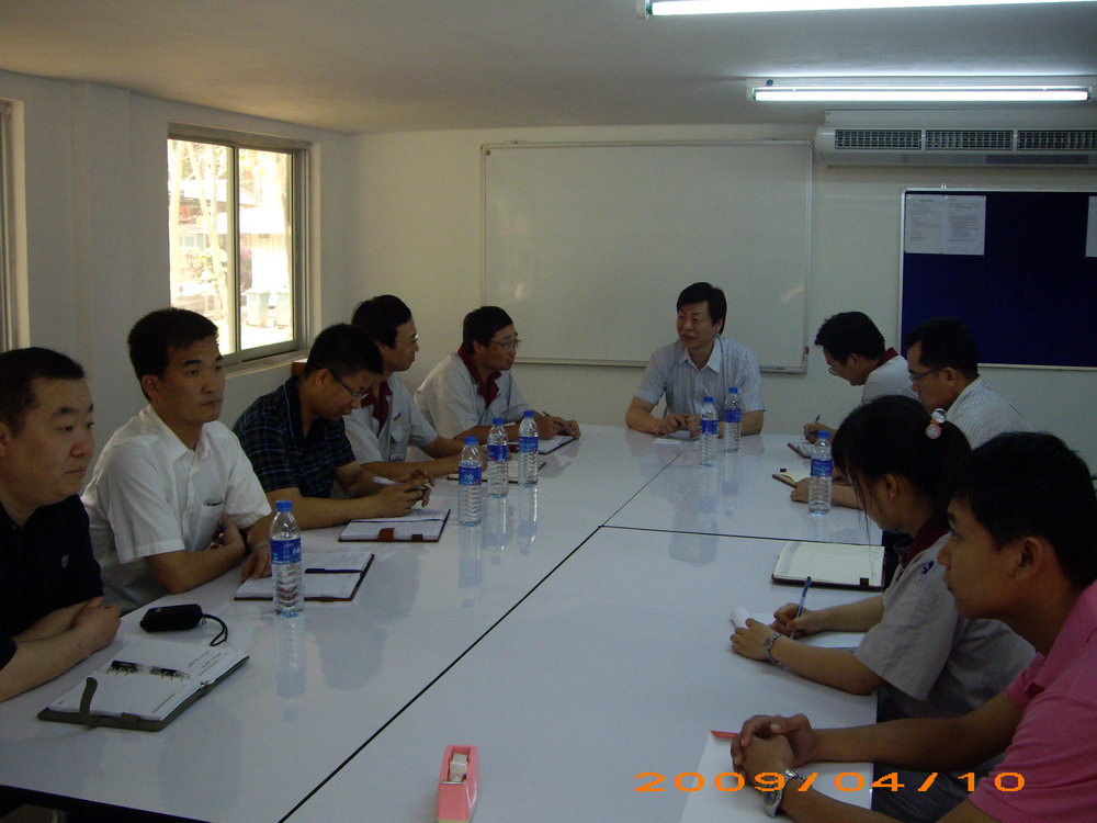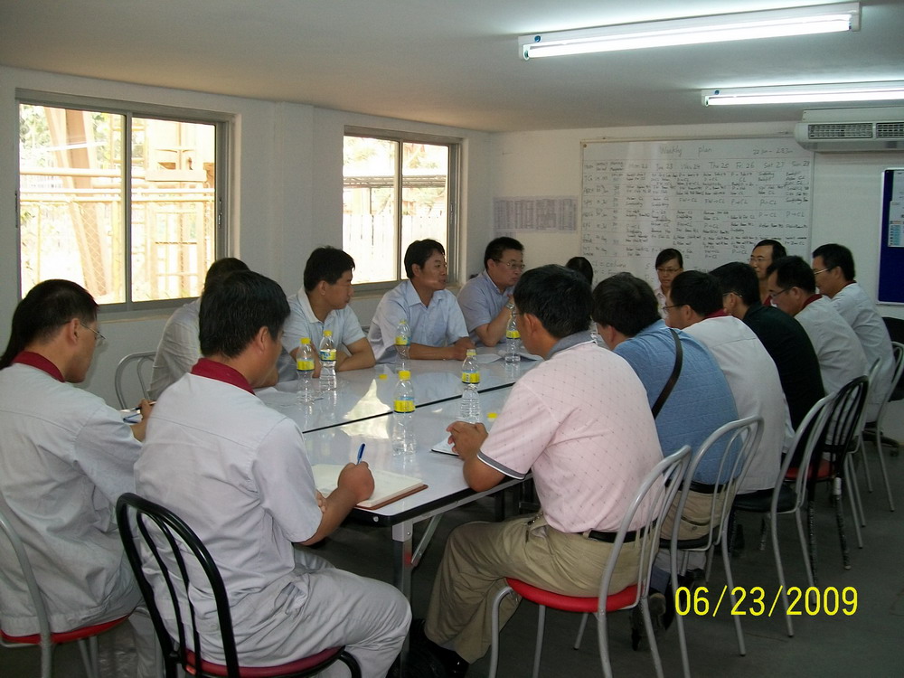 4月,泰國傳統(tǒng)的頌干節(jié)(相當于中國的春節(jié))到來前期,張奇董事長率領(lǐng)市場部、技術(shù)部、采購部等部門負責人來到京都項目現(xiàn)場指導(dǎo)檢查工作。張董事長不顧旅途勞頓,清晨六點多即離開曼谷趕往項目現(xiàn)場所在地薩拉布里市郊的京都水泥廠。到達項目現(xiàn)場臨建辦公室后,隨即聽取了項目經(jīng)理吳蘇軍代表現(xiàn)場項目部所作的工作匯報。根據(jù)匯報,結(jié)合項目當前總體執(zhí)行情況,張董事長肯定了現(xiàn)場項目部的工作,并且指出,京都項目目前的總體執(zhí)行情況符合公司制訂的計劃,要有信心依照總承包合同圓滿完成該項目。張董事長同時強調(diào)了京都項目的重要性,指示大家對后面的工作要盡早作出計劃,對各種可能出現(xiàn)的情況要做好充分準備,要適應(yīng)業(yè)主的管理模式,在保證項目如期完成的同時,提高公司的項目管理水平,樹立中材節(jié)能更高的企業(yè)形象。王毅等三位部長也從各部門角度提出了具體的意見和建議。隨后,張董事長一行在項目部全體人員的陪同下查看了現(xiàn)場施工區(qū)域。