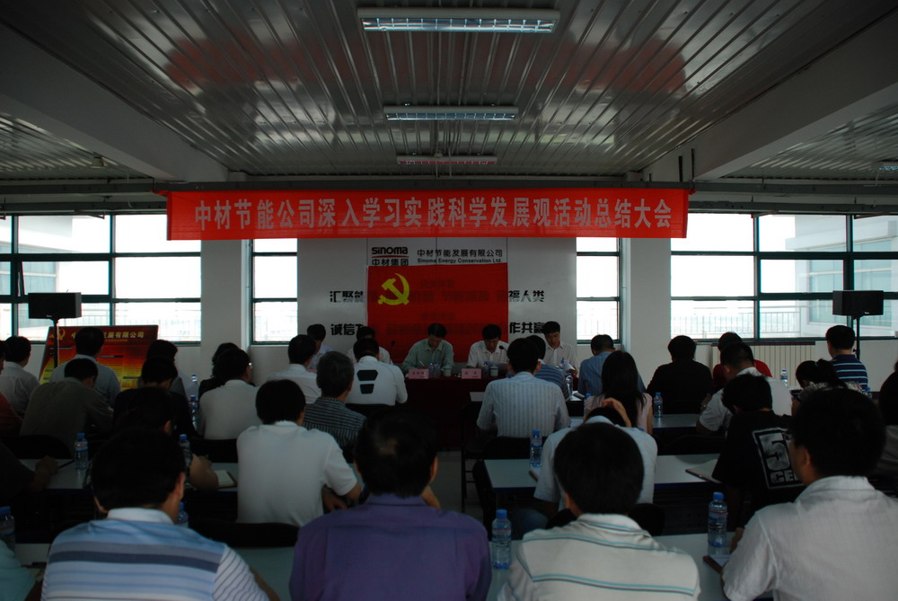 劉習德代表公司學習實踐活動領導小組作了《中材節能發展有限公司深入學習實踐科學發展觀活動總結報告》。報告分為三個部分,一是公司學習實踐活動的主要做法和特點;二是公司學習實踐活動的主要成效;三是鞏固活動成果,完善長效機制,開創節能減排事業發展新局面。報告指出,在集團學習實踐活動領導小組和第一指導檢查組的具體指導下,公司嚴格按照國資委和中材集團的統一部署和要求,高度重視,精心組織,周密部署,扎實推進,全面審視在新的歷史起點上公司面臨的新機遇和新挑戰,較好地完成了學習實踐科學發展觀活動學習調研、分析檢查、整改落實三個階段的各項規定動作,提高了公司廣大黨員干部特別是領導干部貫徹落實科學發展觀的執行力、操作力和創新力,基本實現了“提高思想認識、解決突出問題、創新體制機制、促進科學發展”的目標。下一步要按照國資委和集團的要求,扎實做好收尾和后續工作,鞏固和擴大學習實踐活動成果。